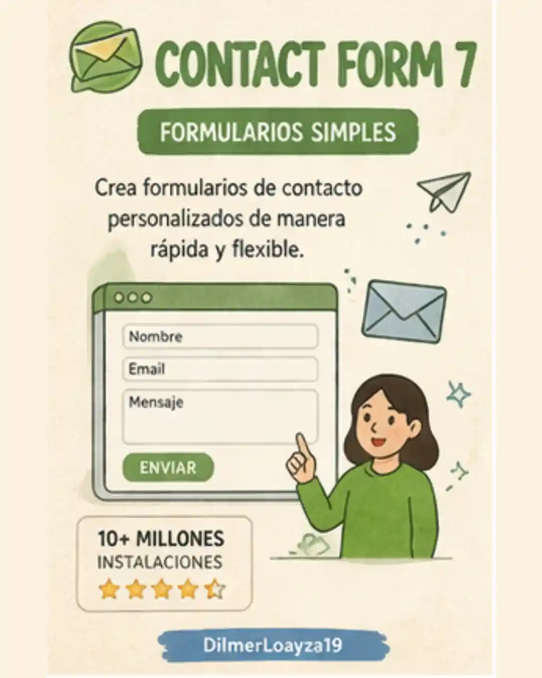 ¿Por qué instalarlo? Todo sitio profesional necesita un formulario de contacto. Contact Form 7 lo resuelve en minutos, sin configuraciones complicadas. Lleva más de 15 años siendo el estándar del ecosistema WordPress.
